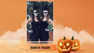 Showcase your favorite Halloween memories with the Pumpkin Podium Slide Style! Your image, in any orientation, tilts slightly on an orange podium with a reflection and two jack-o’-lanterns on the side.